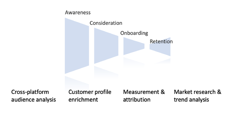 I often think in terms of the age-old marketing funnel, and I also think in terms of touch points (display, social, CTV, website, call centre, email, SMS, push and app to name a few) and I can just about imagine where each data clean room use case could be applied within my beloved funnel, but those trusty arrows pointing to which part of the funnel they help, have not made it onto this diagram, because I’m not 100% sure.